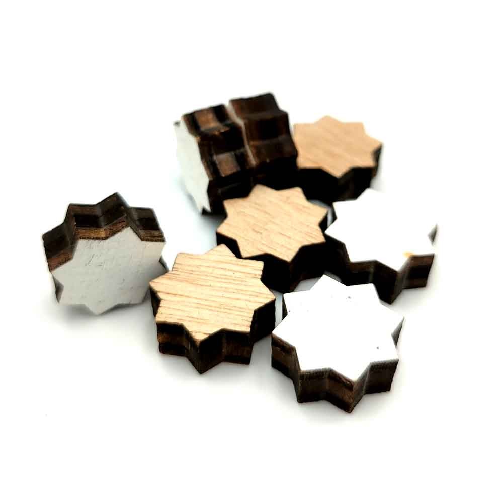 10 x Estrella Madera Laminada - Blanco - Corte Láser - Modelo Nujaima - 1.5cm x 1cm