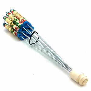 Pack de 12 pinchos para hacer pinchitos morunos a la barbacoa o a la plancha. Mango de madera decorado con pinturas pintadas a mano en Marruecos.