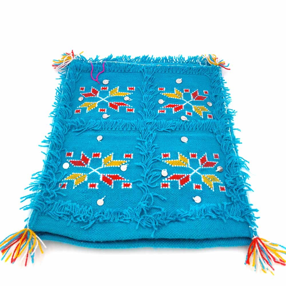 2 x Funda Cojín Bereber Artesanía Marroquí Turquesa- Decoración Andalusí Bohemio 35cm x 35cm- Modelo nº 4