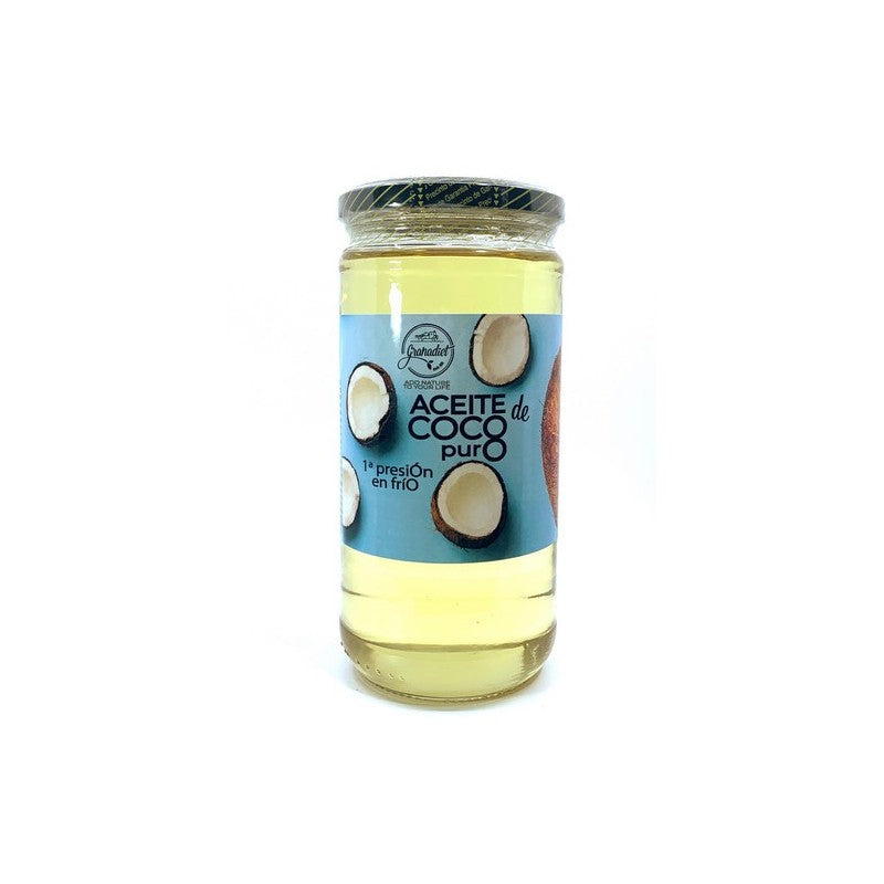ACEITE COCO PURO 1ª PRESIÓN - BOTE CRISTAL 600 ML. - CULINARIO Y COSMÉTICO - GRANADIET