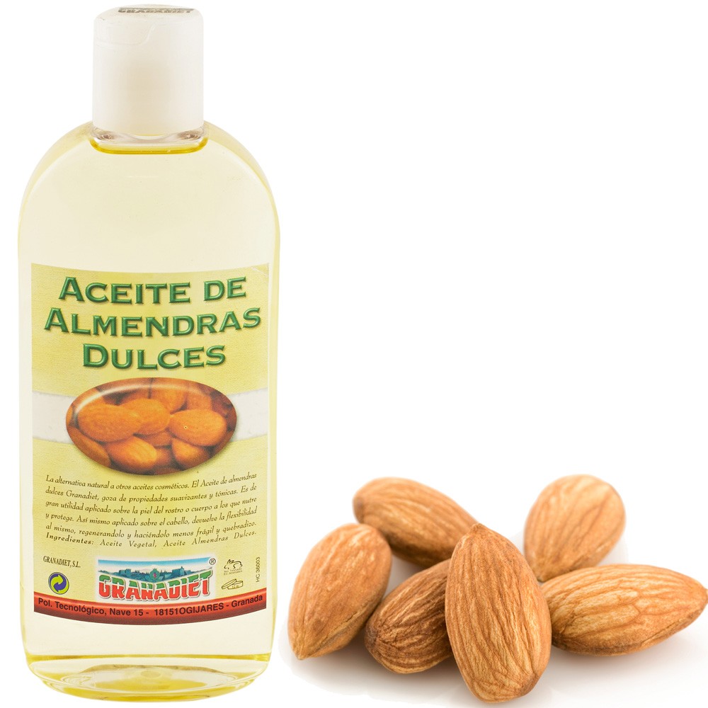 La alternativa natural a otros aceites cosméticos. El aceite de almendras dulces Granadiet, goza de propiedades suavizantes y tónicas. Es de gran utilidad aplicado sobre la piel del rostro o cuerpo a los que nutre y protege. Así mismo aplicado