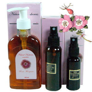 Aceite de Rosa mosqueta 100% puro prensado en frío y enriquecido con vitamina E natural.