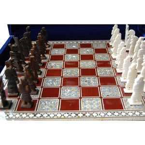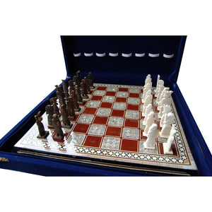 Ajedrez Taracea Siria - Fichas Hueso - Funda Terciopelo
