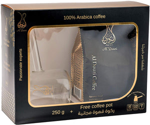 Al Douri - Café Arabe Especial con Cardamomo + Regalo Cafetera Arabe Cristal - 250 gr