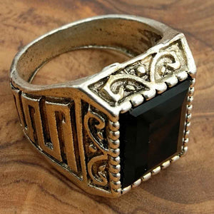Anillo Estilo Medieval Gótico, para caballero. El metal es una aleación Inox. La piedra es de Resina Sintética