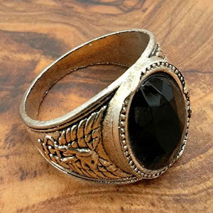 Anillo Unisex Aleación Inox - Piedra Negra - Estilo Medieval Gótico - Modelo Arbaa Ashrin Ahmar