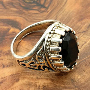 Anillo Unisex Aleación Inox - Piedra Negra - Estilo Medieval Gótico - Modelo Zalazin Aswad