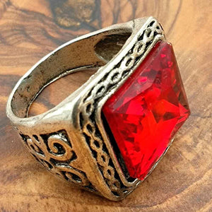 Anillo unisex Aleación Inox - Piedra Roja - Estilo Medieval Gótico - Modelo Ashra Ahmar
