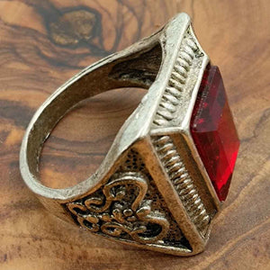 Anillo unisex Aleación Inox - Piedra Roja - Estilo Medieval Gótico - Modelo Ashra Ahmar