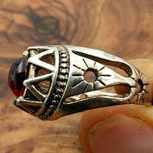 Anillo Unisex Aleación Inox - Piedra Roja - Estilo Medieval Gótico - Modelo Sitta Ashrin Ahmar
