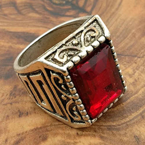 Anillo Unisex Aleación Inox - Piedra Roja - Estilo Medieval Gótico - Modelo Tisaa Ashrin Ahmar