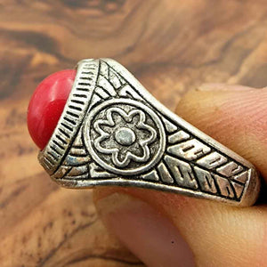 Anillo Unisex Aleación Inox - Piedra Roja - Estilo Medieval Gótico - Modelo Wahid Ashrin Ahmar