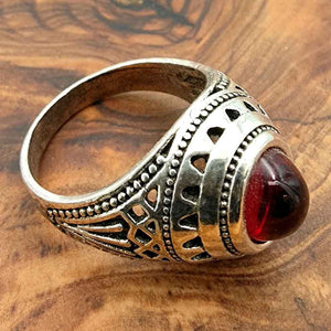 Anillo Unisex Aleación Inox - Piedra Roja - Estilo Medieval Gótico - Modelo Zalaza Ashrin Ahmar