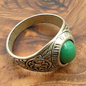 Anillo Unisex Aleación Inox - Piedra Verde - Estilo Medieval Gótico - Modelo Sebaa Ashra Akhdar