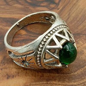 Anillo Unisex Aleación Inox - Piedra Verde - Estilo Medieval Gótico - Modelo Sebaa Ashrin Akhdar