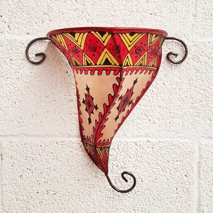 Aplique de piel 100% natural, pintado a mano con henna. Realizado artesanalmente en marruecos por maestro artesanos de Tradicion, centenaria.