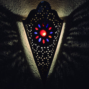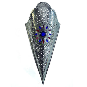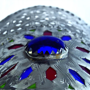 Aplique de bronce calado bañado en níquel. Decorado con resinas de colores. Crea un juego de colores muy agradable y decorativo. Artículo de 1ª calidad realizado artesanalmente.