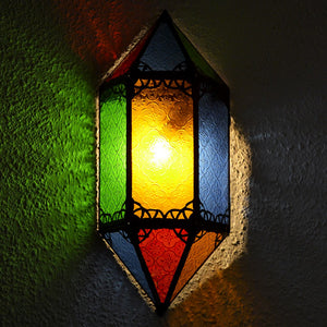 Aplique calado realizado artesanalmente con cristales multicolor. Crea un ambiente muy agradable.Gracias a su diseño emite colores y dibujos muy elegantes.