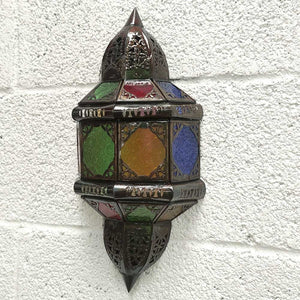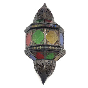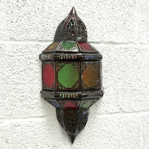 Aplique calado realizado artesanalmente con cristales multicolor. Crea un ambiente muy agradable.Gracias a su diseño emite colores y dibujos muy elegantes. Medidas: 35 x 19 cm.