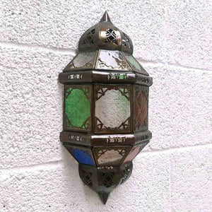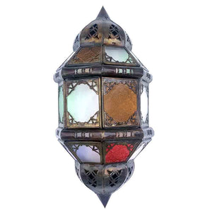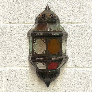 Aplique calado realizado artesanalmente con cristales multicolor. Crea un ambiente muy agradable.Gracias a su diseño emite colores y dibujos muy elegantes. Medidas: 35 x 19 cm.