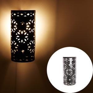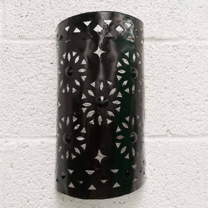 Aplique de hierro calado con forma de medio cilíndro. Diseñado para ser colocado en la pared. Medidas: 19 x 33 cm.