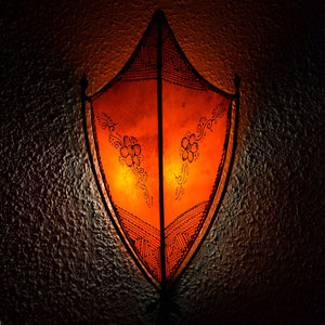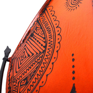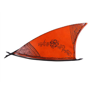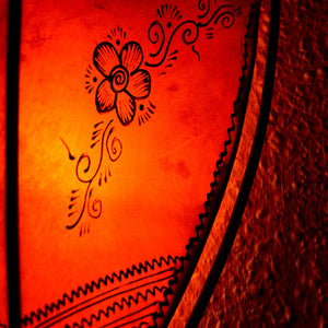 Aplique artesano realizado con base de piel (cabra generalmente) y decorado con dibujos étnicos realizados mediante henna.