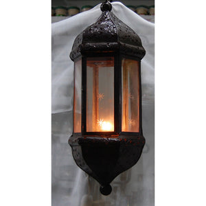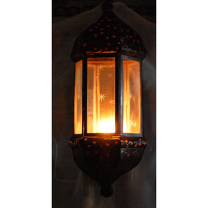 Aplique de hierro y cristal para velas pequeñas, no más de 5 cm de alto. Producto muy decorativo.