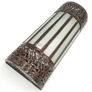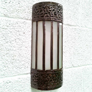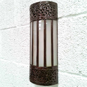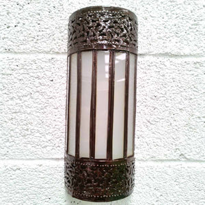 Aplique Pantalla Artesanía Marroquí Metal y Cristal - Color Cobre y Blanco - Modelo Nisfun AbiadSerie Sable