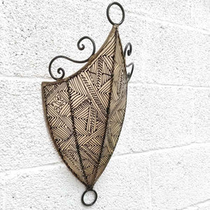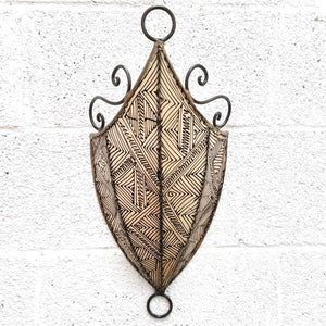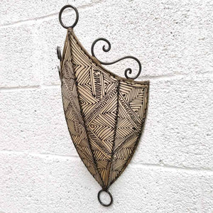 Aplique de pared realizado artesanalmente en marruecos con piel y pintado a mano con henna. Este aplique creara un ambiente morisco en cualquier rincon de su hogar dándole un toque andalusí.