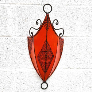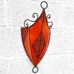 Aplique Pared Pantalla Piel Naranja Decorado con Henna Artesanía Marroquí Modelo Aldurue