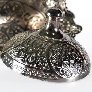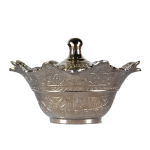 Azucarero de alpaca decorado con motivos árabes.