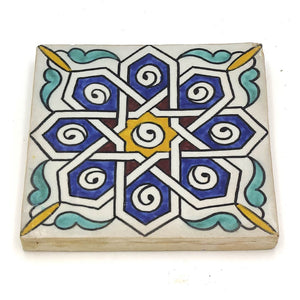 Azulejo andalusí realizado artesanalmente con motivos árabes. Ideal para solería, como pieza decorativa, para crear un mosaico, cenefa, etc.