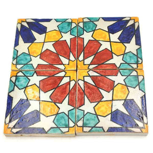 Azulejo Andalusí - Zellige Mosaico Nazari - Multicolor - Estrella Morisca - 10x10 cm - Artesanal - Modelo 85