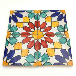 Azulejo Andalusí - Zellige Mosaico Nazari - Multicolor - Estrella Morisca - 15x15 cm - Artesanal - Modelo 88