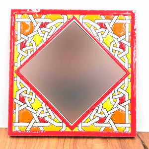 Azulejo espejo estilo Alhambra de Granada, con detalles geométricos y acabado espejado. Con medidas de 11 cm x 11 cm, es una pieza decorativa elegante y única, ideal para quienes buscan combinar tradición y modernidad en su hogar. Perfecto para embellecer cualquier espacio con sofisticación.