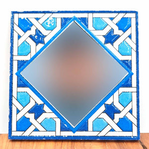 Azulejo espejo estilo Alhambra de Granada, con detalles geométricos y acabado espejado. Con medidas de 11 cm x 11 cm, es una pieza decorativa elegante y única, ideal para quienes buscan combinar tradición y modernidad en su hogar. Perfecto para embellecer cualquier espacio con sofisticación.