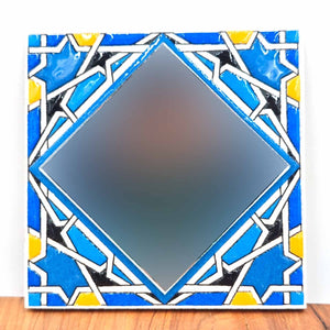 Azulejo espejo estilo Alhambra de Granada, con detalles geométricos y acabado espejado. Con medidas de 11 cm x 11 cm, es una pieza decorativa elegante y única, ideal para quienes buscan combinar tradición y modernidad en su hogar. Perfecto para embellecer cualquier espacio con sofisticación.