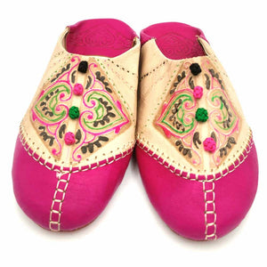 Babucha Marroquí Mujer - Color Rosa - Artesanía Marroquí Cuero Autentico - Modelo Azrar