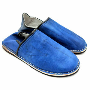 Babucha Pantuflas Árabe de Cuero Adulto Unisex - Azul - Artesanía Marroquí - Modelo Kadim