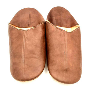 Babucha Zapatilla Andar por Casa Estilo Árabe - 100% Cuero - Color Marron Oscuro - Artesanía Marroquí - Modelo Darun