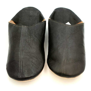Babucha Zapatilla Andar por Casa Estilo Árabe - 100% Cuero - Color Negro - Artesanía Marroquí - Modelo Darun