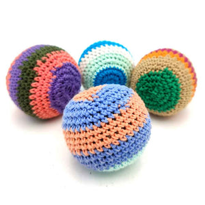 Bola de tela multicolor rellena de semillas para malabares o toques de pie. Diámetro: 5,5 cm.