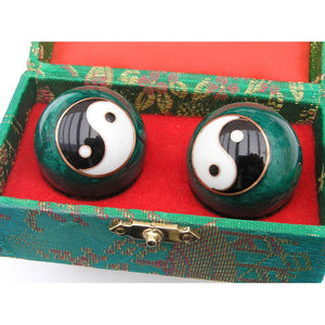 Caja con 2 bolas chinas para ejercicios de relajación.Viene presentado en estuche decorado.Ideal para regalo.Disponible en varios colores.