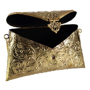Bolso De Latón - Relieve Floral - Realizado Artesanalmente - Cadena y Cierre