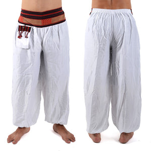 Bombacho blanco hombre realizado artesanalmente con algodón y decorado con tapiz frontal.