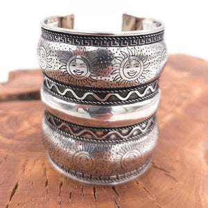 Brazalete de Metal Artesanía India Estilo Mandala Sol Tibetano
