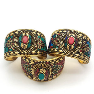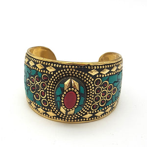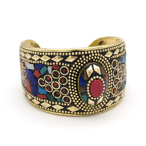 Brazalete metal dorado, estilo oriental, Disponible en Varios colores. Con piedras incrustadas. Bisuteria india pra comprar a buen precio online.
