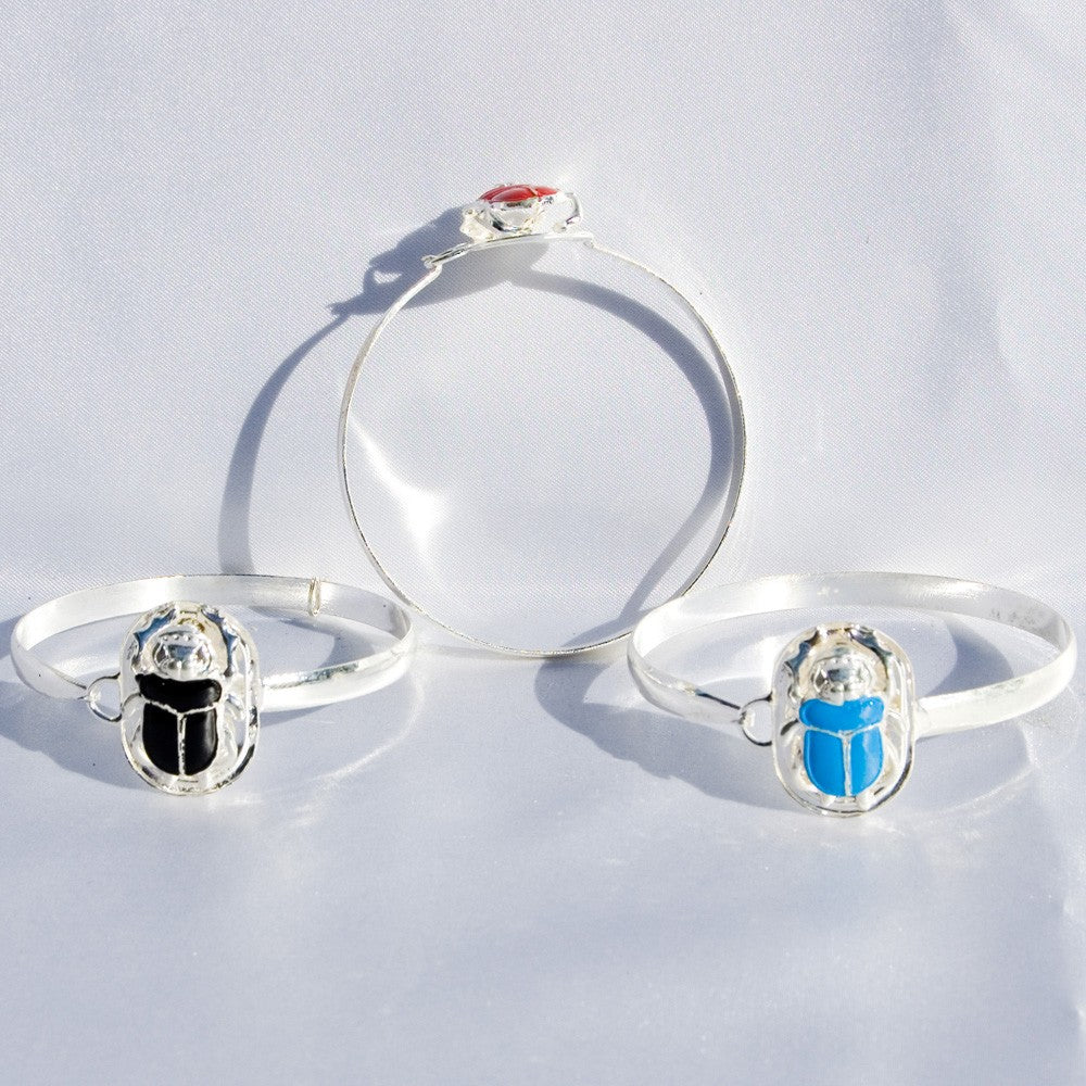 Brazalete Plateado Escarabajo Egipcio - Varios Colores - 6 cm