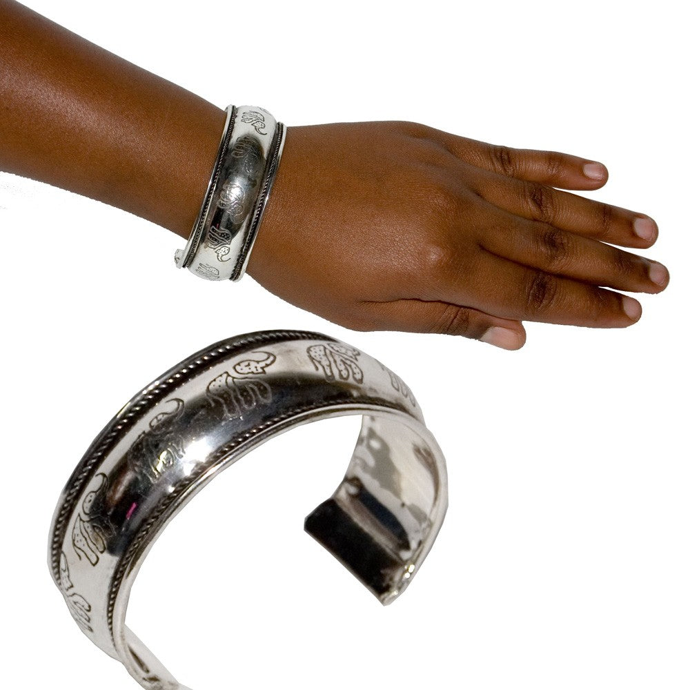 Brazalete Plateado - Grabado Elefantes - Alpaca