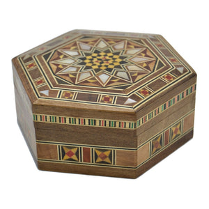 Caja Árabe Taracea Siria Hexagonal - Tapa Estrella 12 Puntas - 11 cm